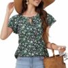 - Elegant Short Sleeve Tops for Women: Artfully crafted with a flattering V-neck to elongate your silhouette. Timeless floral print adds romance, while skillfully cut sleeves blend relaxation with sophistication