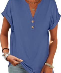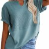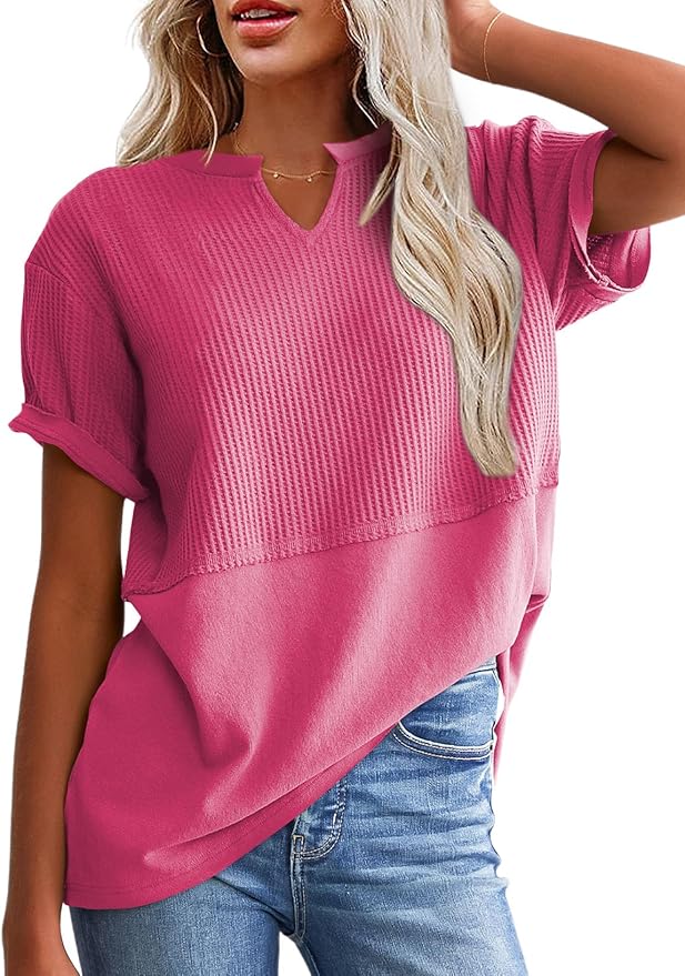 - Feature: Waffle knit tops with v neck design, loose fit, short sleeve shirts, basic tunic tops, solid color tees. A chic basicstyle can create many possible stylish combinations.