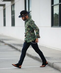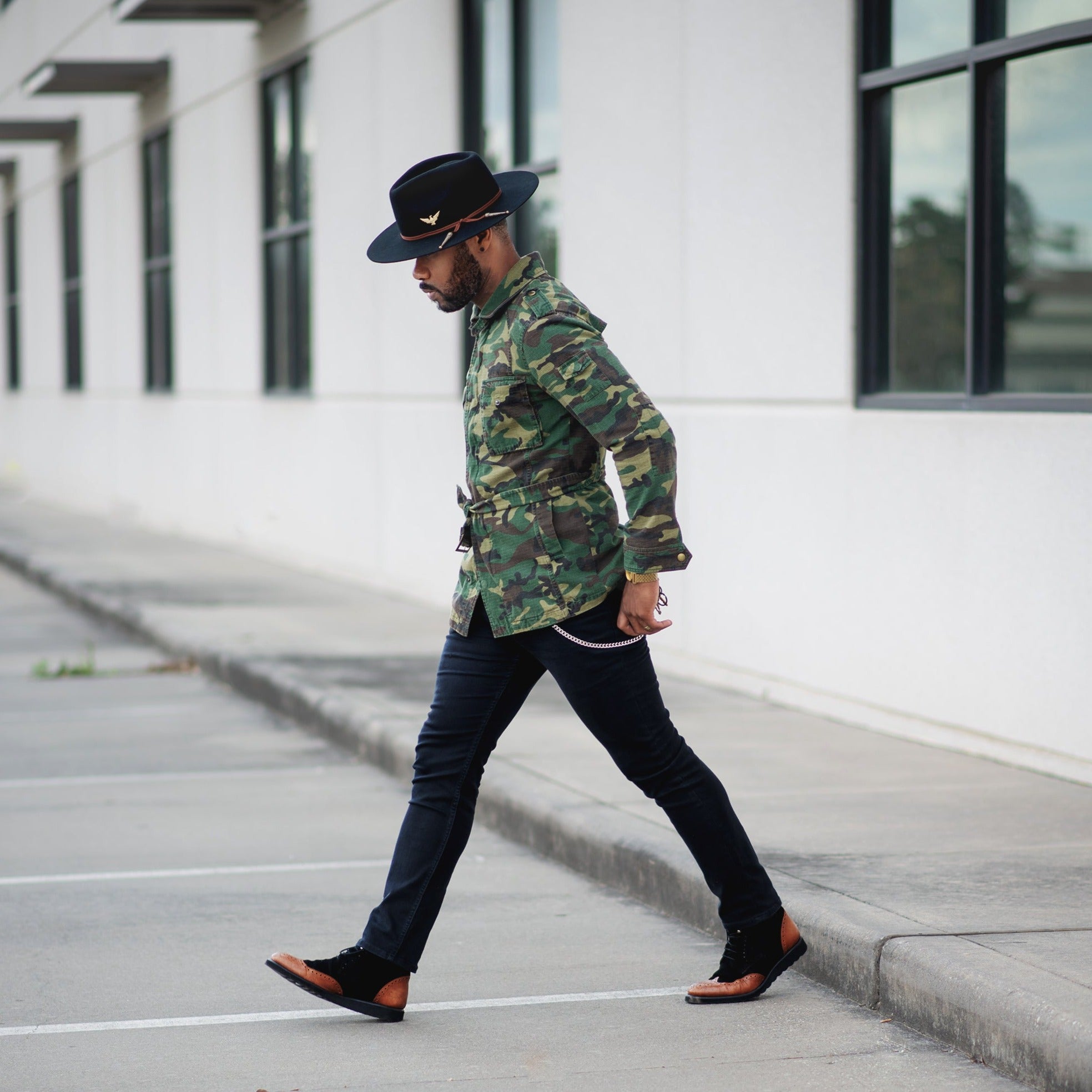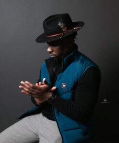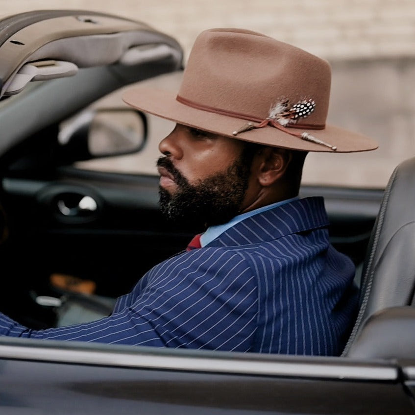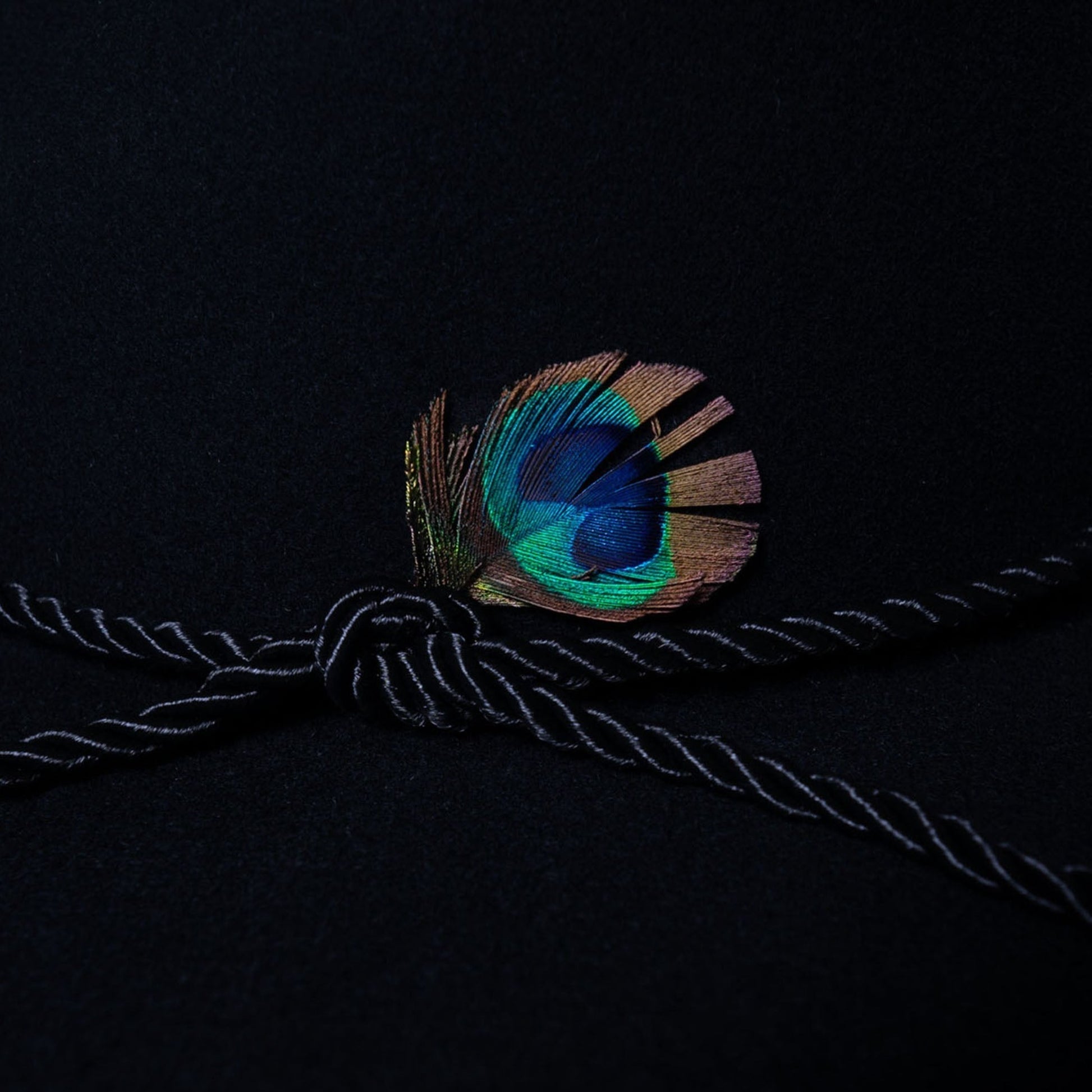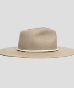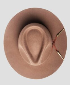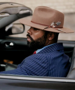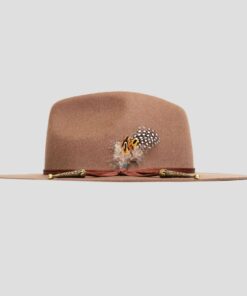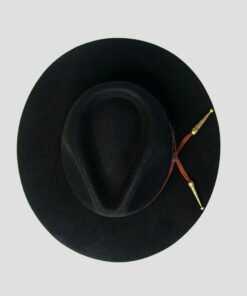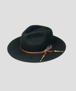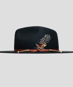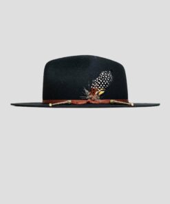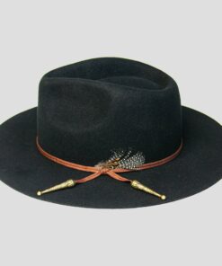 This striking, stylish fedora is made of 100% firm wool felt. It features a 4 1/2″ teardrop crown and a 3″ bound-edge flat brim. Additional details include a braided hat band and a feather detail.