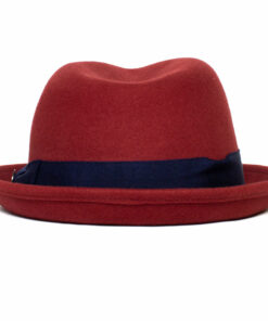Our Classic Pork Pie Fedora Hat, adorned with a solid color bow hat band for an added touch of sophistication.