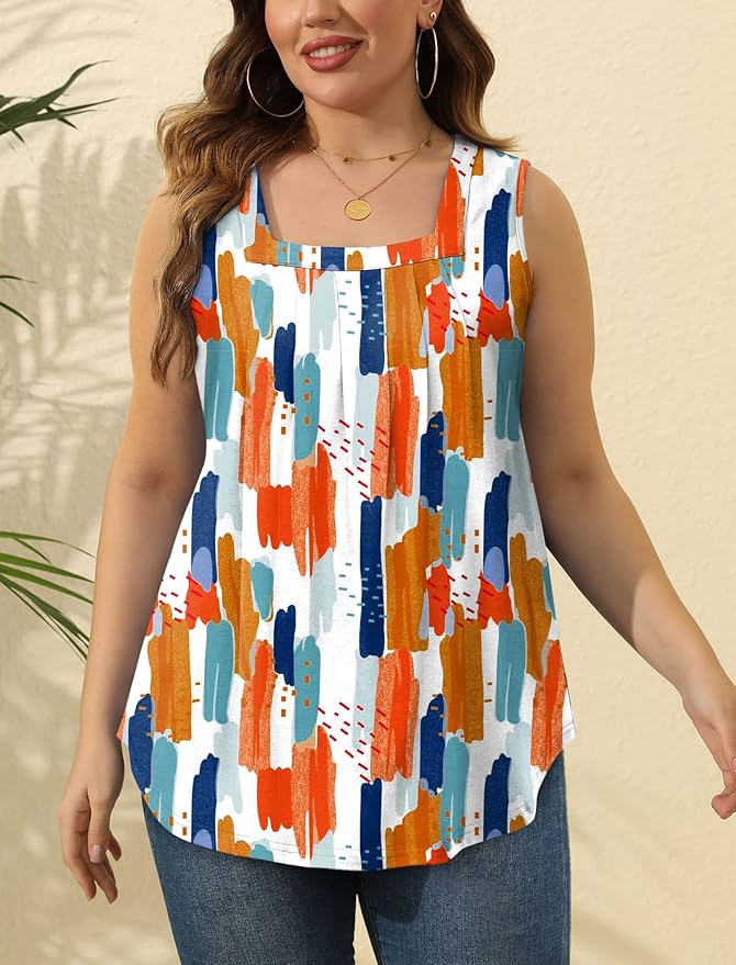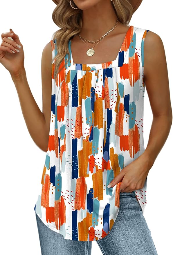 - Design: Square neck tank tops with pleat in front, curved hem and loose fit. It’s flattering and flowy to hide the stomach which suitable for any body shape.