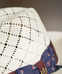 Now we know how the fashion world spells summer: D-A-R-T-M-O-U-T-H. Inspired by carefree, sunny days, the Dartmouth Breezer Panama Hat is made of shantung paper straw that’s lightweight yet sturdy, and fashionable yet protective and water resistant. Our soft, pliable, hand-woven hat showcases a creased crown with a perforated pattern offering ventilation when you need it most. A wide 1 5/8″ ribbon band flaunts a contrast paisley bow, while the 2 1/8″ brim offers UPF sun protection and cooling shade. This dapper hat crowns you with summer cool. Crown height: 3.75″.