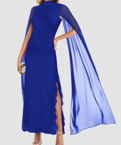 - Fashion v neck spaghetti strap high slit hem a line dress drapes naturally for women to hide tummy and the fabric is infused with delicate glitter elements to give it a subtle and luxurious sheen in the light and visual interest Concealed zipper closure for smooth, seamless look. You’ll feel amazing and glamorous at any semi-formal or formal