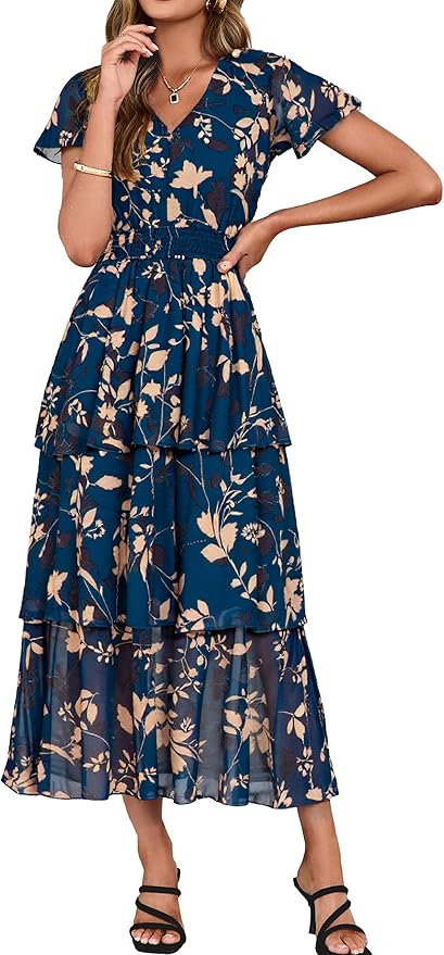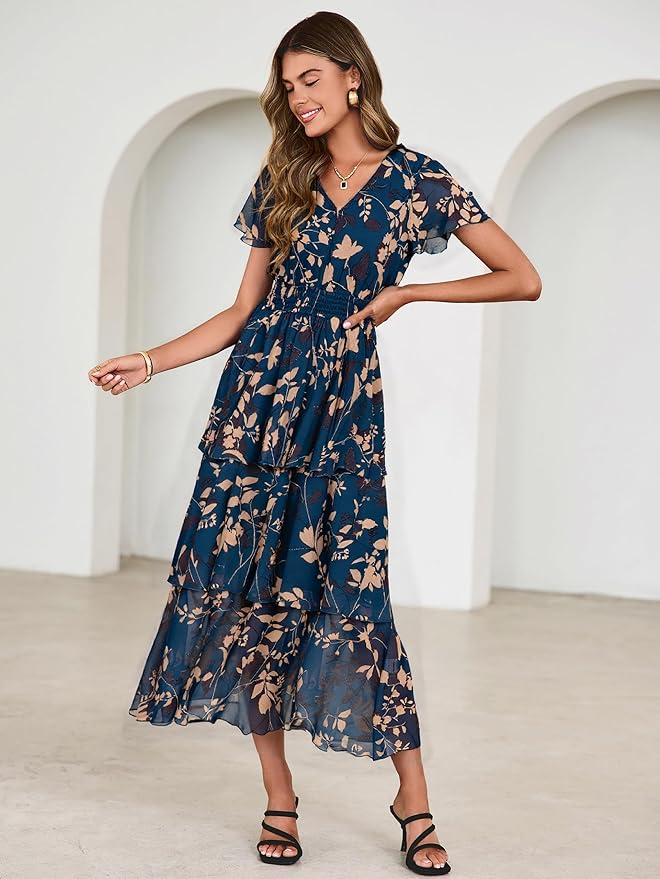 - Material – This floral wedding guest is crafted from lightweight and soft chiffon fabric, which offers a comfortable, breathable fit with a gentle stretch from the smocked waistband, making it ideal for all-day wear whether you’re at a casual event or a vacation resort