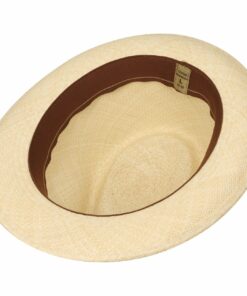 This is what a trilby should look like indented crown, cheekily turned up brim at the back, monochrome summer colours and encircled with an elegant striped grosgrain ribbon trim. Its visual strengths are complemented by its unique quality Panama straw has been woven by hand to create this holiday hat, giving it an air of comfortable ease whilst the silicon-reinforced crown helps it maintain its shape at all times. An extraordinarily becoming hat with sophisticated flair.