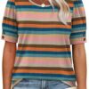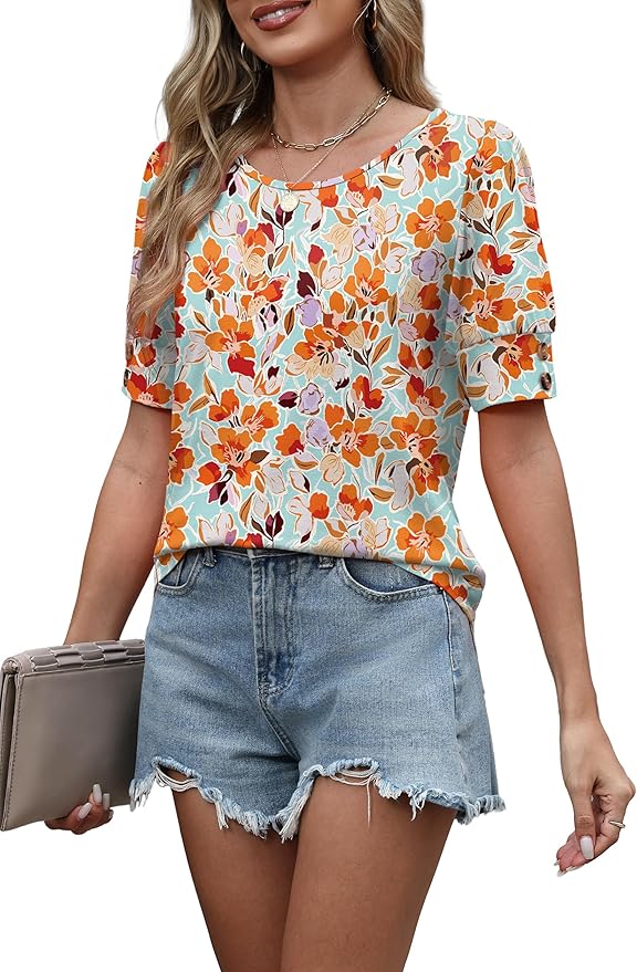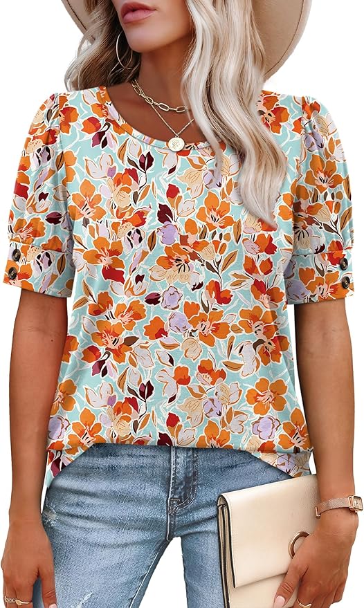 - Loose Fit: This stylish top features a flowy, comfortable fit with button-accented short sleeves for a touch of elegance. Offering flattering coverage, it’s a perfect choice for year-round wear