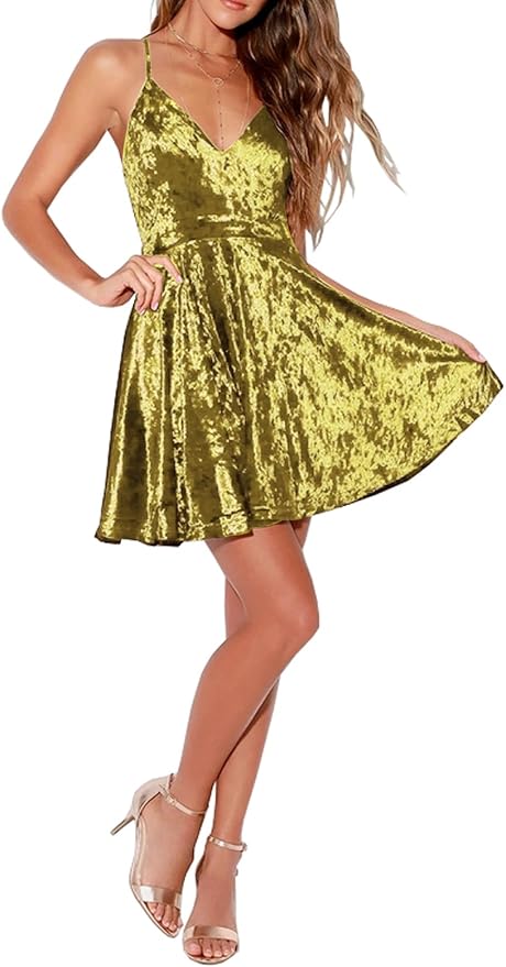 - V neckline, thin cross over shoulder straps and an invisible back zipper Mini Dress