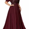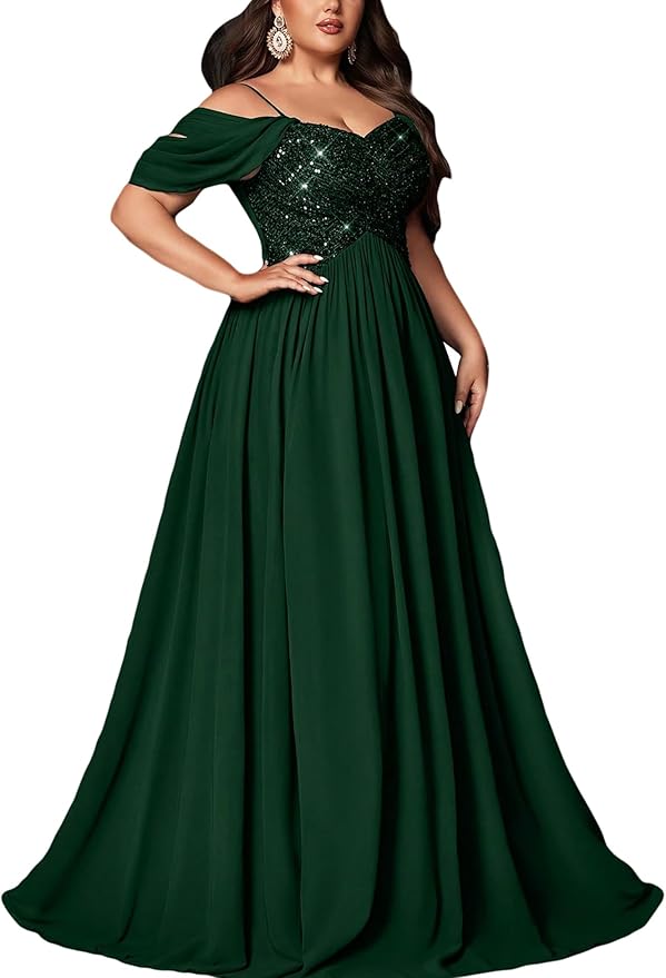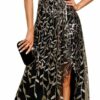 - Fashion v neck spaghetti strap high slit hem a line dress drapes naturally for women to hide tummy and the fabric is infused with delicate glitter elements to give it a subtle and luxurious sheen in the light and visual interest Concealed zipper closure for smooth, seamless look. You’ll feel amazing and glamorous at any semi-formal or formal