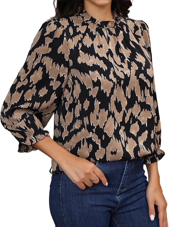 Mock neckline with soft ruffle trim
